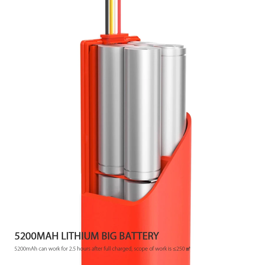 5. 5200mAH li-batterie. Longue durée de vie et plus de 250 mètres carrés