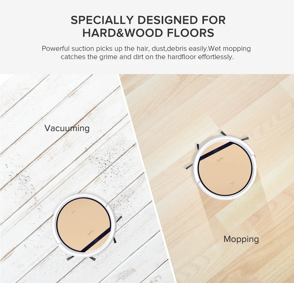 | ILIFE V5sPro Robot aspirateur aspirateur nettoyage humide poils d'animaux et sol dur automatique aspiration puissante désinfection Ultra mince |