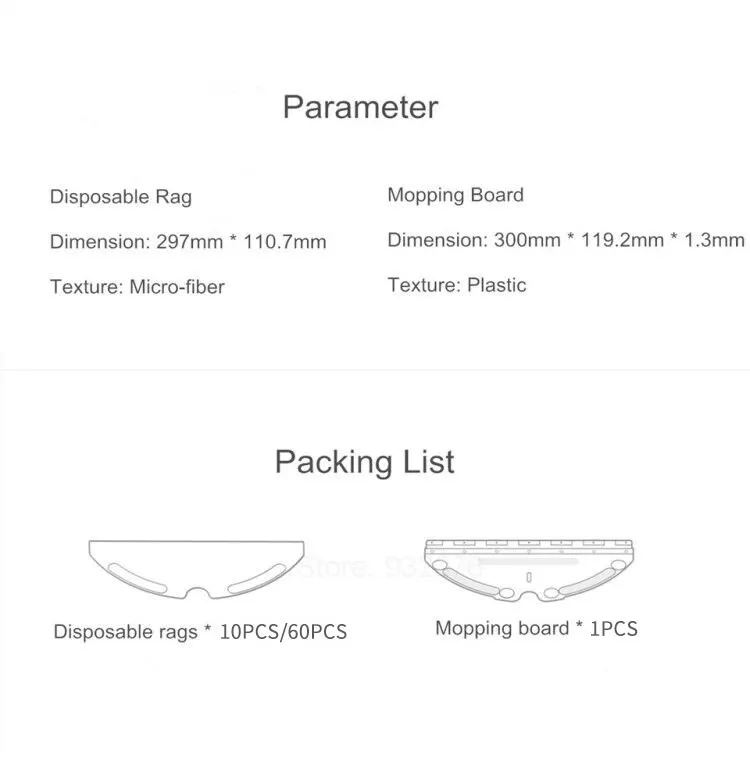 {Détails du produit}:* 100% tout neuf et de haute qualité* Fait de matériaux de haute qualité, durable* Facile à assortir diverses empreintes sur le sol, jus résiduel, taches d'huile, etc.* Il est plus pratique de remplacer après utilisation, pas besoin de nettoyer le balai* Dans le cadre de l'entretien de routine, il peut être facilement enlevé et remplacé* Applicable pour xiaomi / Roborock S6 T6 / Xiaowa S50 S51* Taille: 295*112mm* Contenu de l'emballage:* Comme le montre l'image