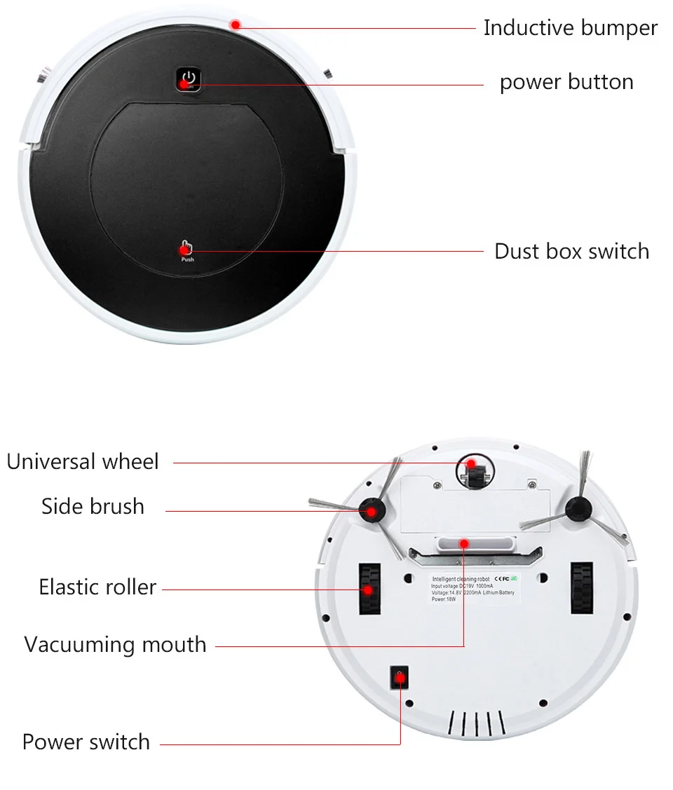 1800 Pa multi-fonction Robot aspirateur Machine de nettoyage Intelligent charge aspirateur trois-en-un balayage Machine
