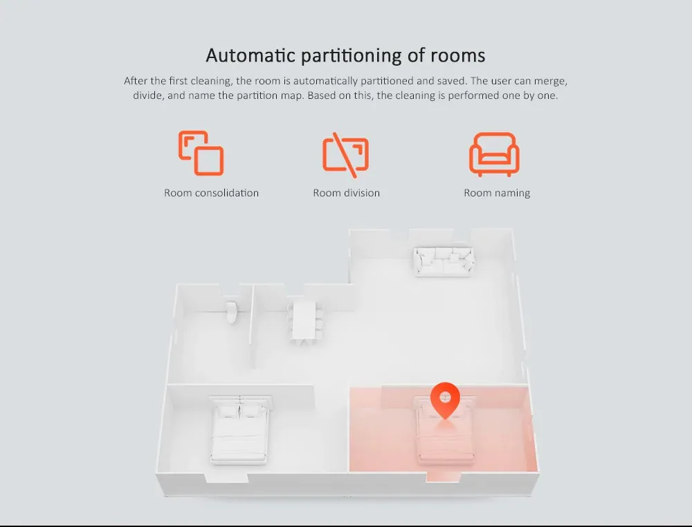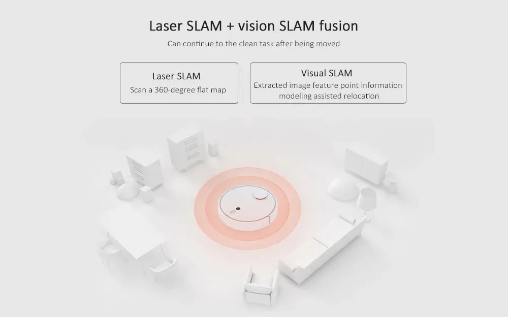 • Système de navigation double laser et capteur de vision ld pour une stabilité et une précision améliorées• Le claquement de Laser + la fusion de claquement de vision, peut continuer à la tâche propre après avoir été déplacé• Reconnaissance d'image AI, déterminer avec précision les caractéristiques d'emplacement de la porte, réaliser un cloisonnement automatique de la pièce, et l'image générée est détruite immédiatement, assurant la confidentialité et la sécurité• Cloisonnement automatique des pièces• Intelligent planification de trajectoire• Chargement automatique, balayage continu• 2000Pa grande aspiration, le nettoyage est plus propre, de sorte que vous ne vous inquiétez plus du nettoyage• Capacité de la batterie: 5200mAh• Tension de 100 - 240V• L'application ne peut être utilisée qu'après avoir passé à la carte de la chineSpécification: